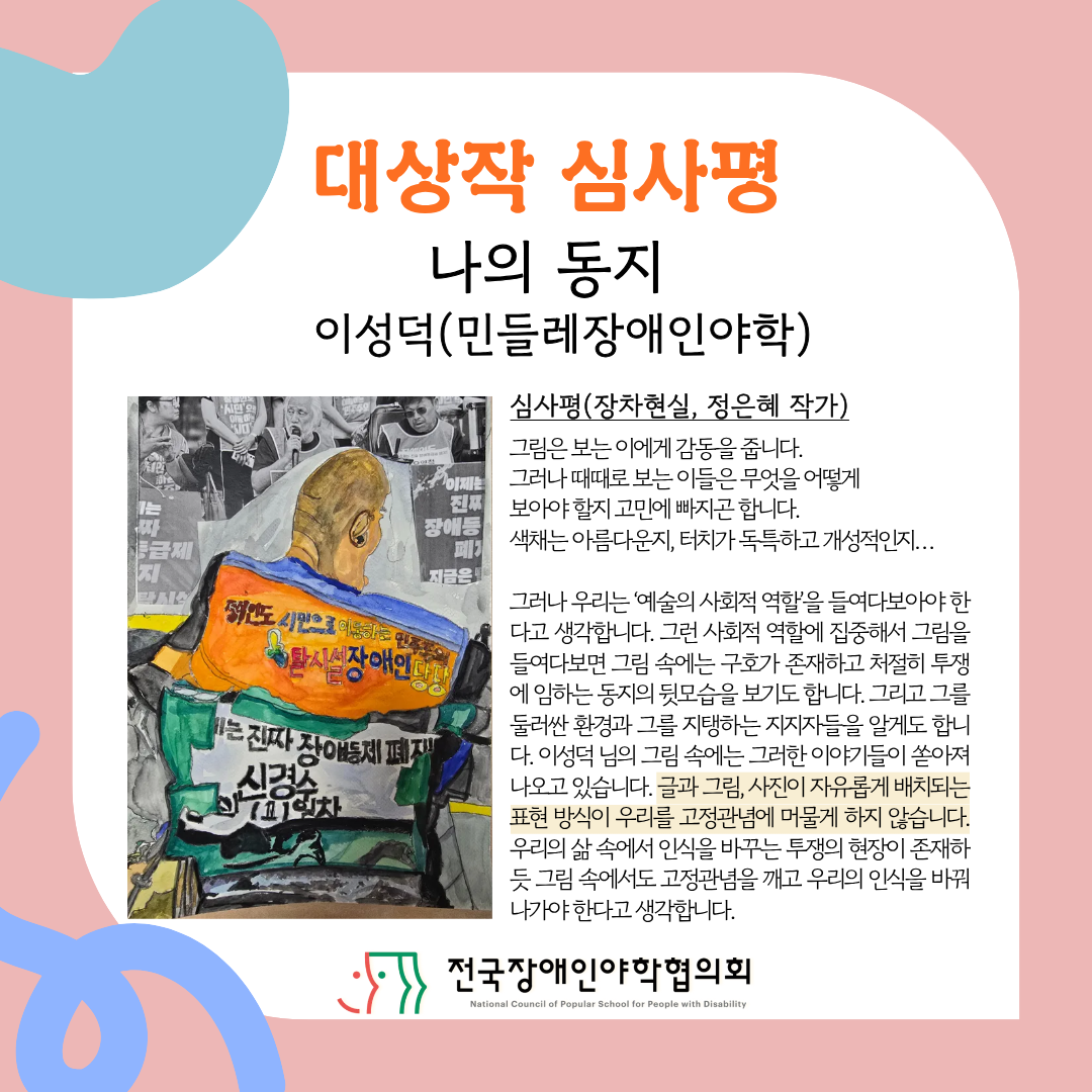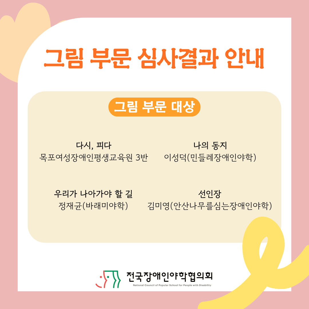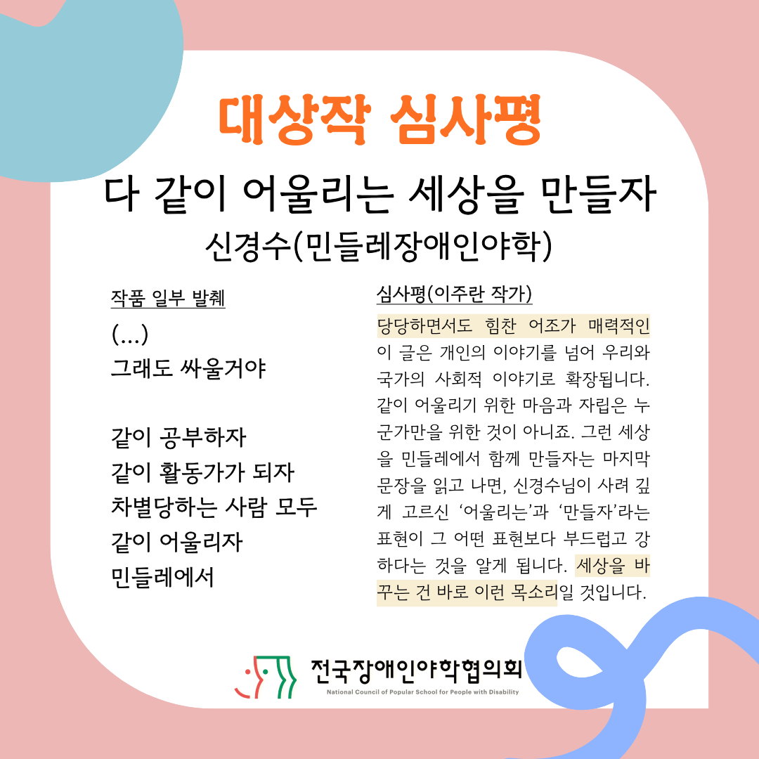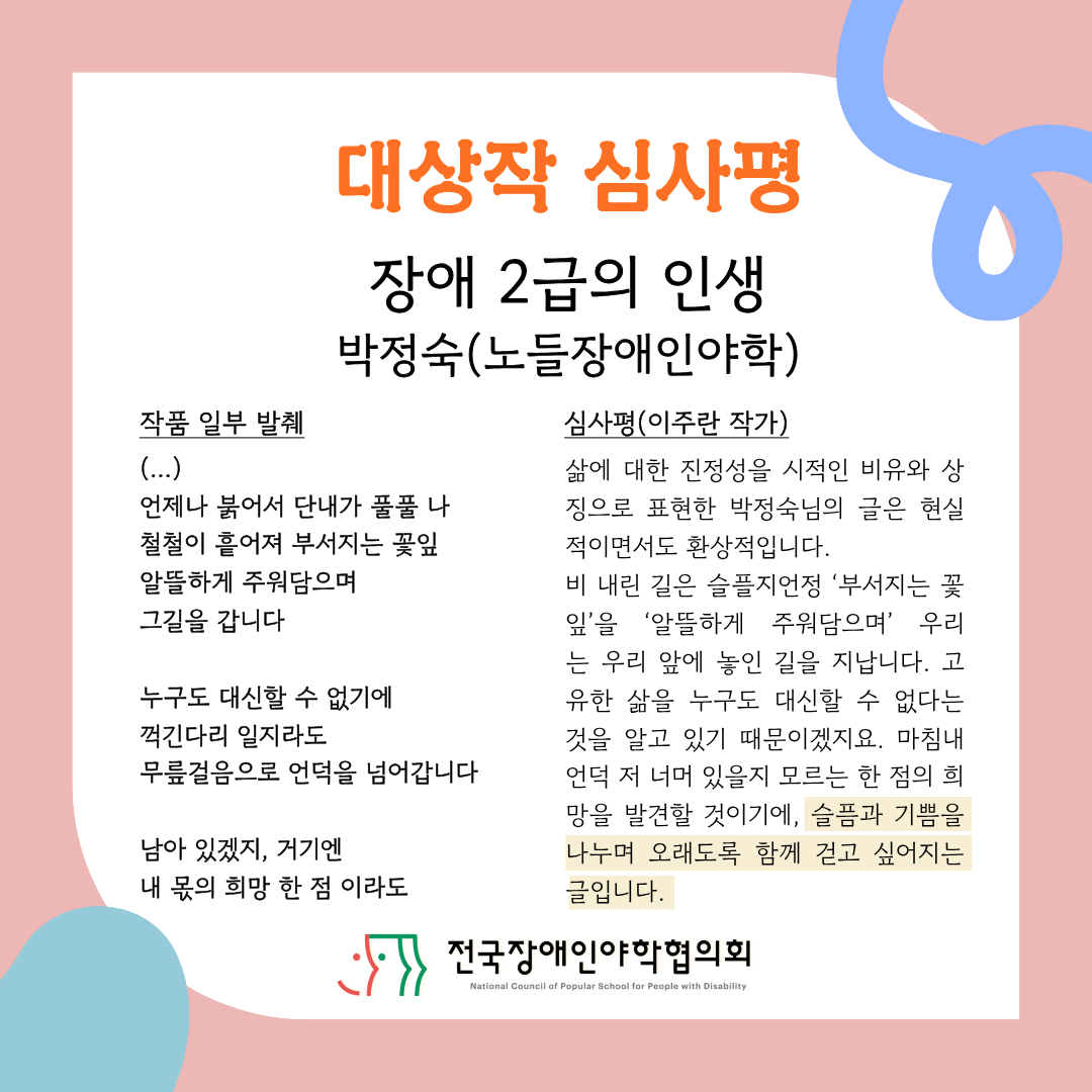 작품으로 제2회 장애인평생교육권리 공모전을 빛내주셔서 진심으로 감사드립니다