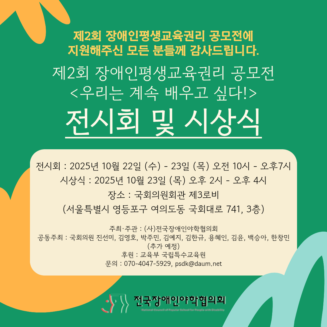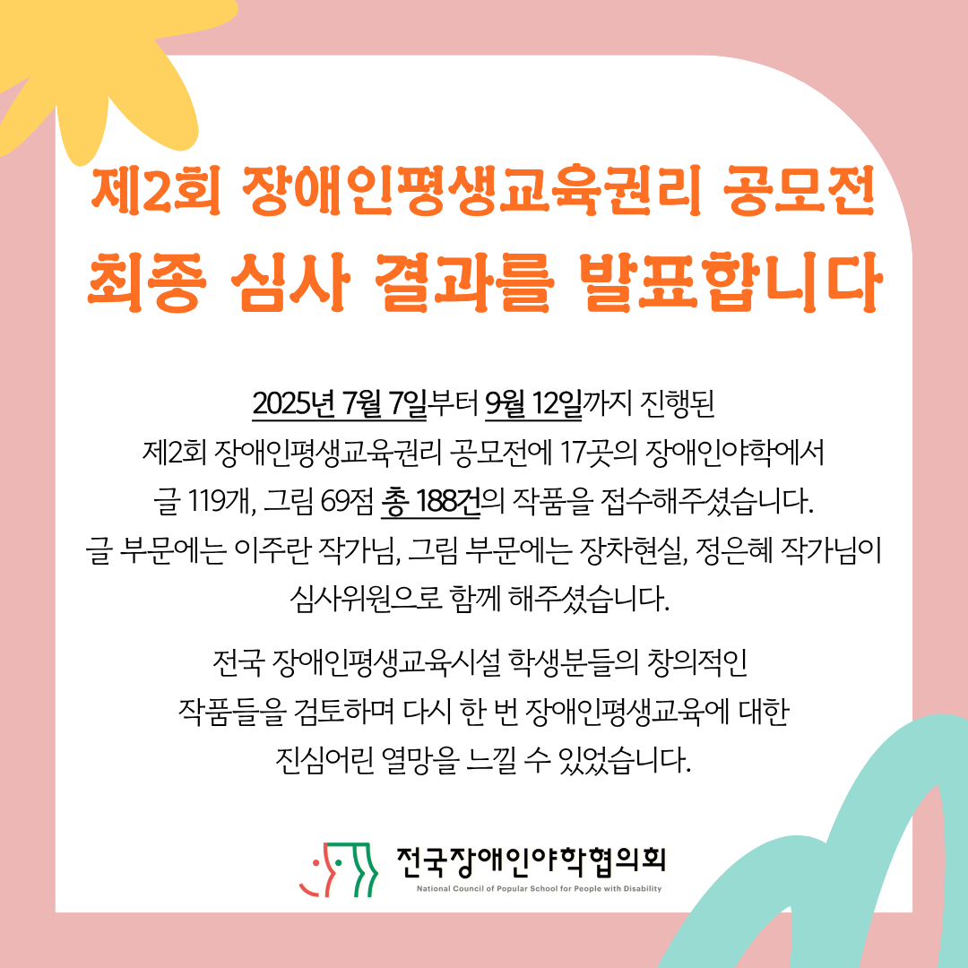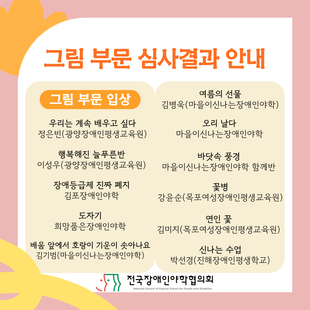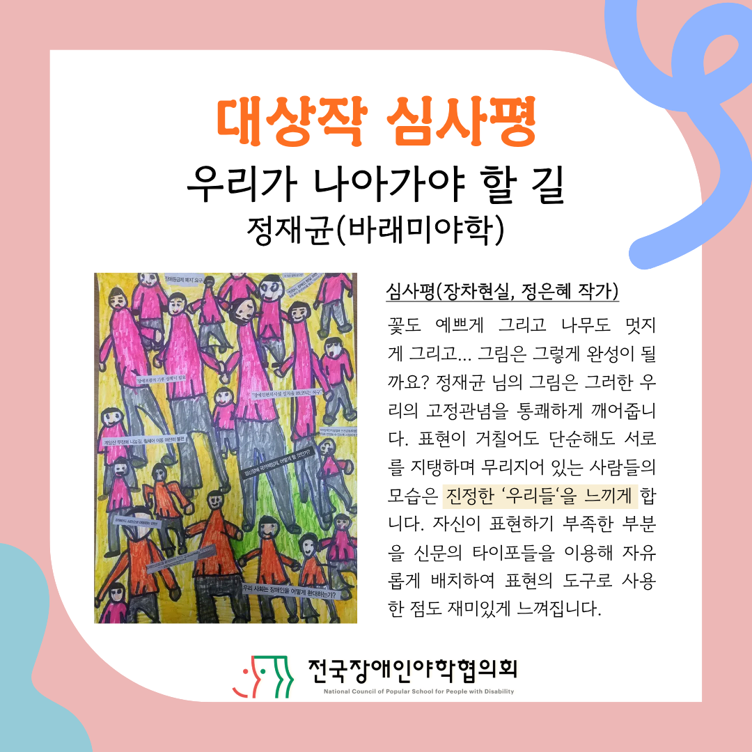 작품으로 제2회 장애인평생교육권리 공모전을 빛내주셔서 진심으로 감사드립니다