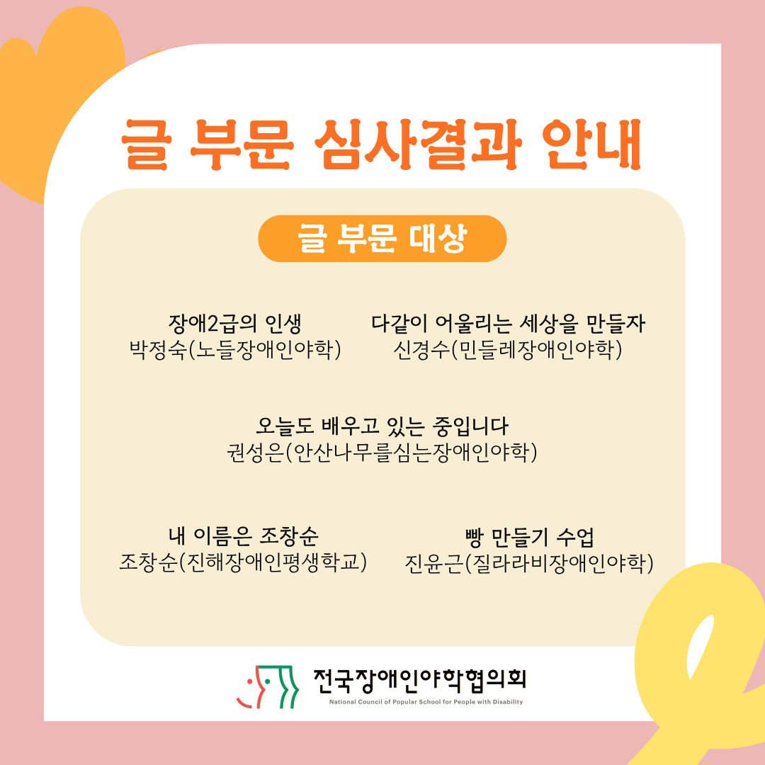 제2회 장애인평생교육 권리 공모전 "우리는 계속 배우고 싶다" 선정 결과 발표