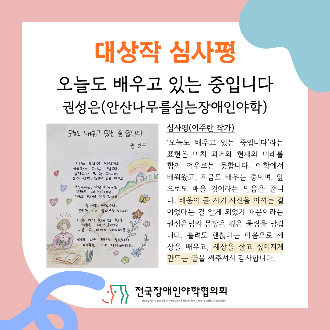 - <오늘도 배우고 있는 중입니다> 권성은(안산나무를심는장애인야학)
