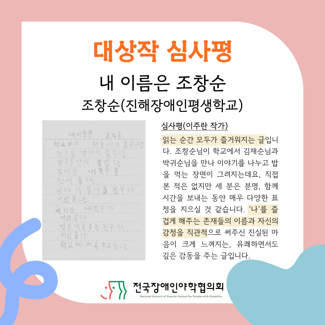 - <내 이름은 조창순> 조창순(진해장애인평생학교)