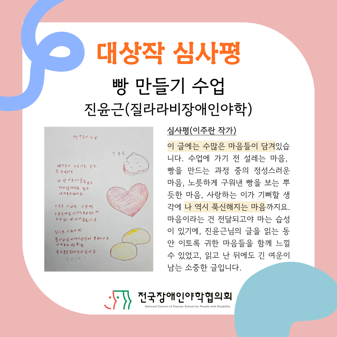 - <빵 만들기 수업> 진윤근(질라라비장애인야학)