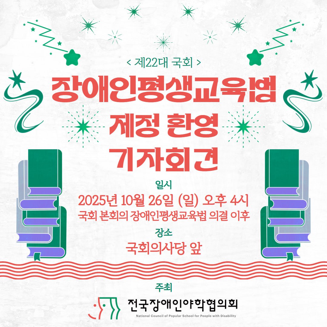 ㅁ 일시 : 25.10.26(일) 오후 4시 국회 본회의 장애인생교육법 의결 이후